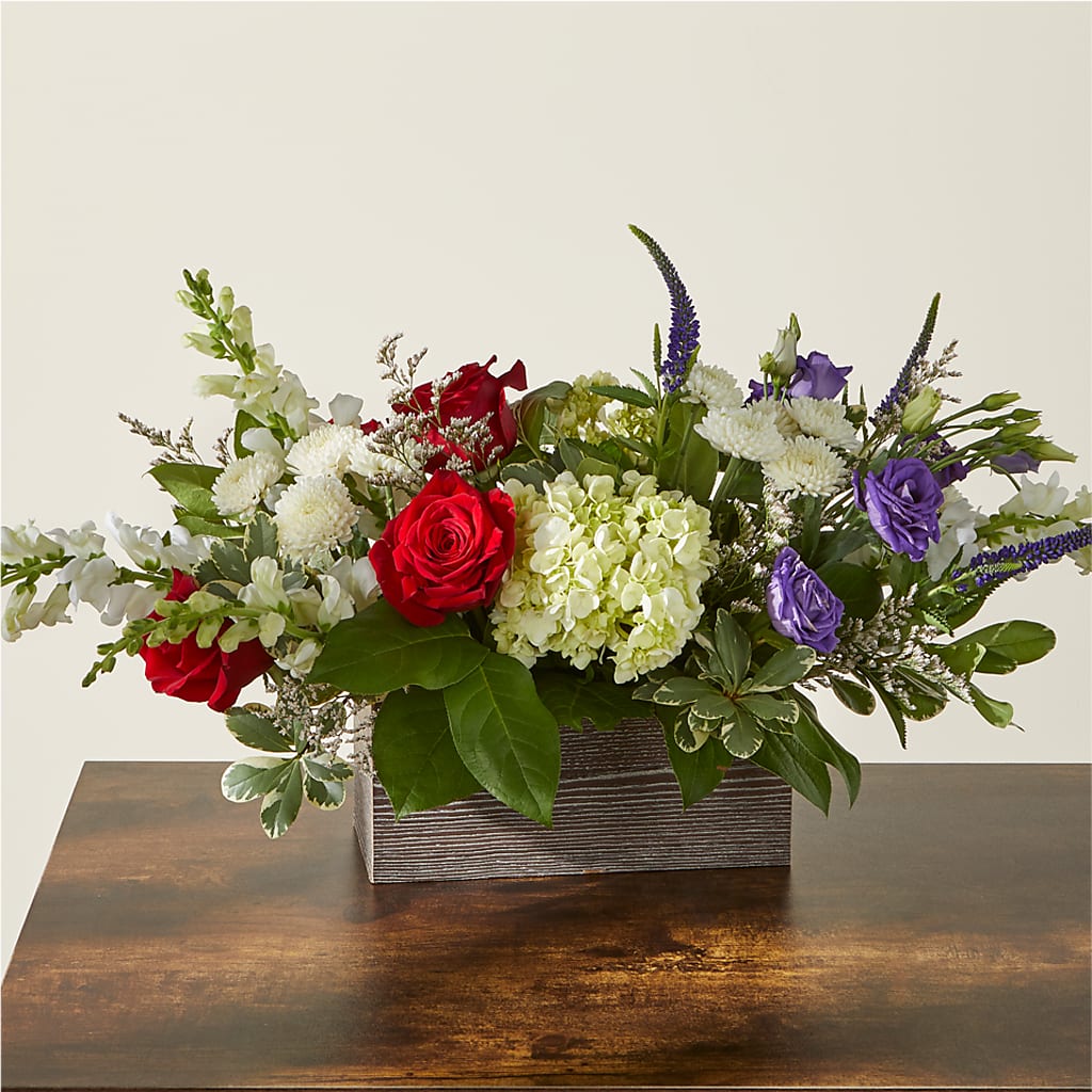 • Designed by florists in a brown wooden box, ready to display.